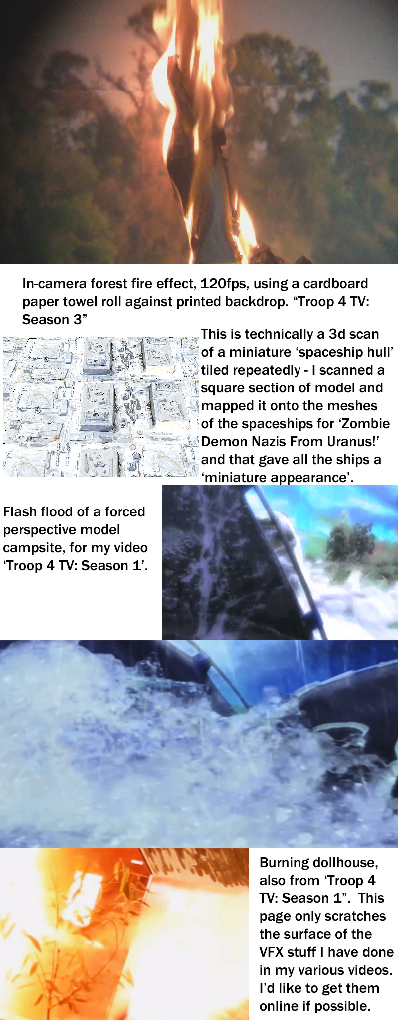 More examples of notable mini fx scenes of various types, scattered across projects such as 'Church of Explosions & Mayhem', 'Sabotage 757', 'Star Frigate One', 'Fortress Siege', 'Doppelganger', 'House Trek: The Next Generation', 'Video Heist', 'Tinyville Disaster 2: Micropocalypse', 'Fortress Siege 2' and a couple of other projects, may be posted over time.